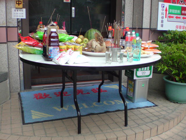 今はお彼岸?みたいで家の前や店先で食べ物に線香突き刺したり、お金(リアルマネーじゃないやつ)を燃やしたりしてます。