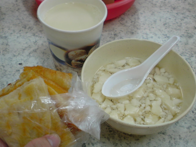 朝は揚げパンと豆乳、豆腐みたいなのが入った甘い汁でした。