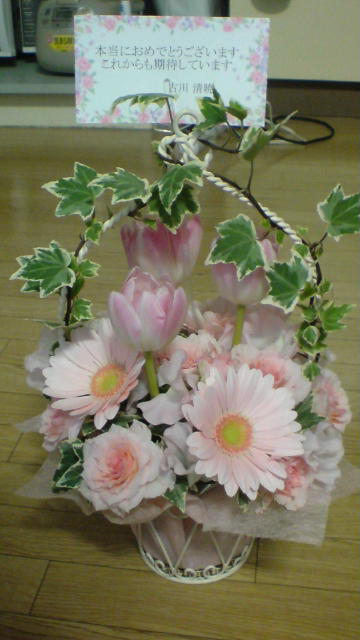 兄と慕う先輩から合格祝いの花が届きました☆想定外の贈り物でとても嬉しかったです(o^-’)b
