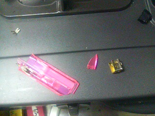 何が何だかわからず、恐る恐る辺りを見回しました。するとピンク色したプラスチックが散らばってました。…?