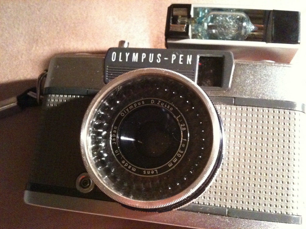オリンパスのPENのEES-2です。製造が1971年までだったのでかなり古いはずに、箱も取り説もついてて状態はいいです☆