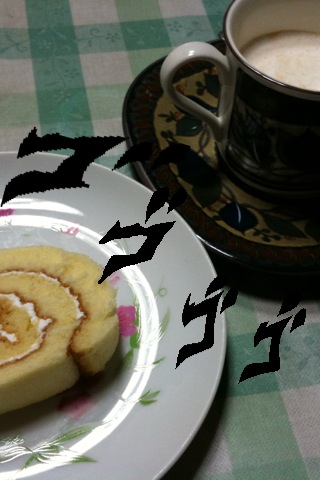 講座の忘年会を終え、家でロールケーキ(・・;)